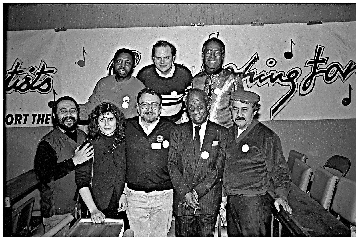 Yes that is James Baldwin at Guild Books: photo copyright, Steven Gross 1987, Artists for Washington celebration with (left to right in the front row) David Hernandez, Carol Becker, Richard Bray, James Baldwin, Jose Gonzalez, and Phil Cohran behind Jose Gonzalez.